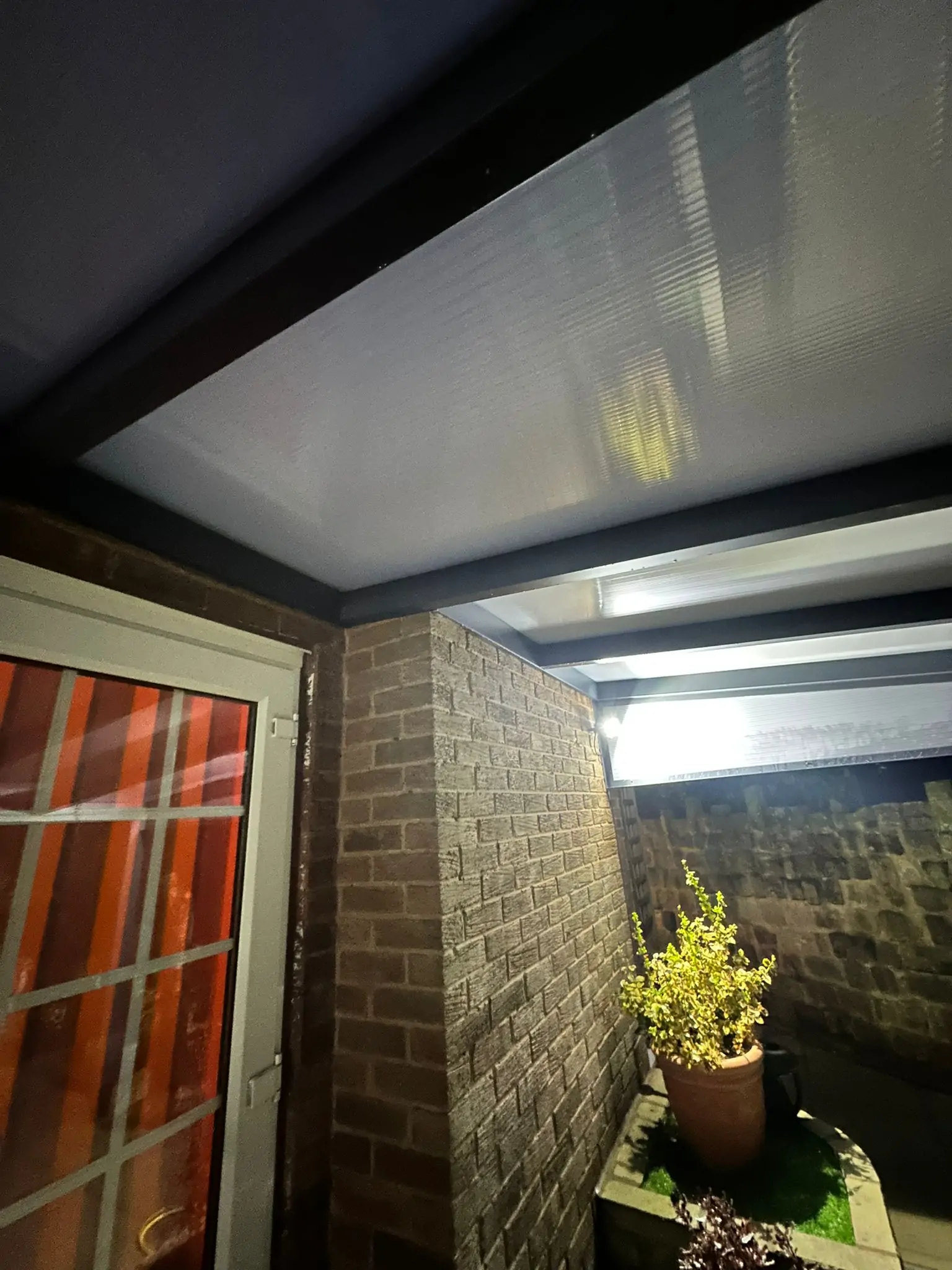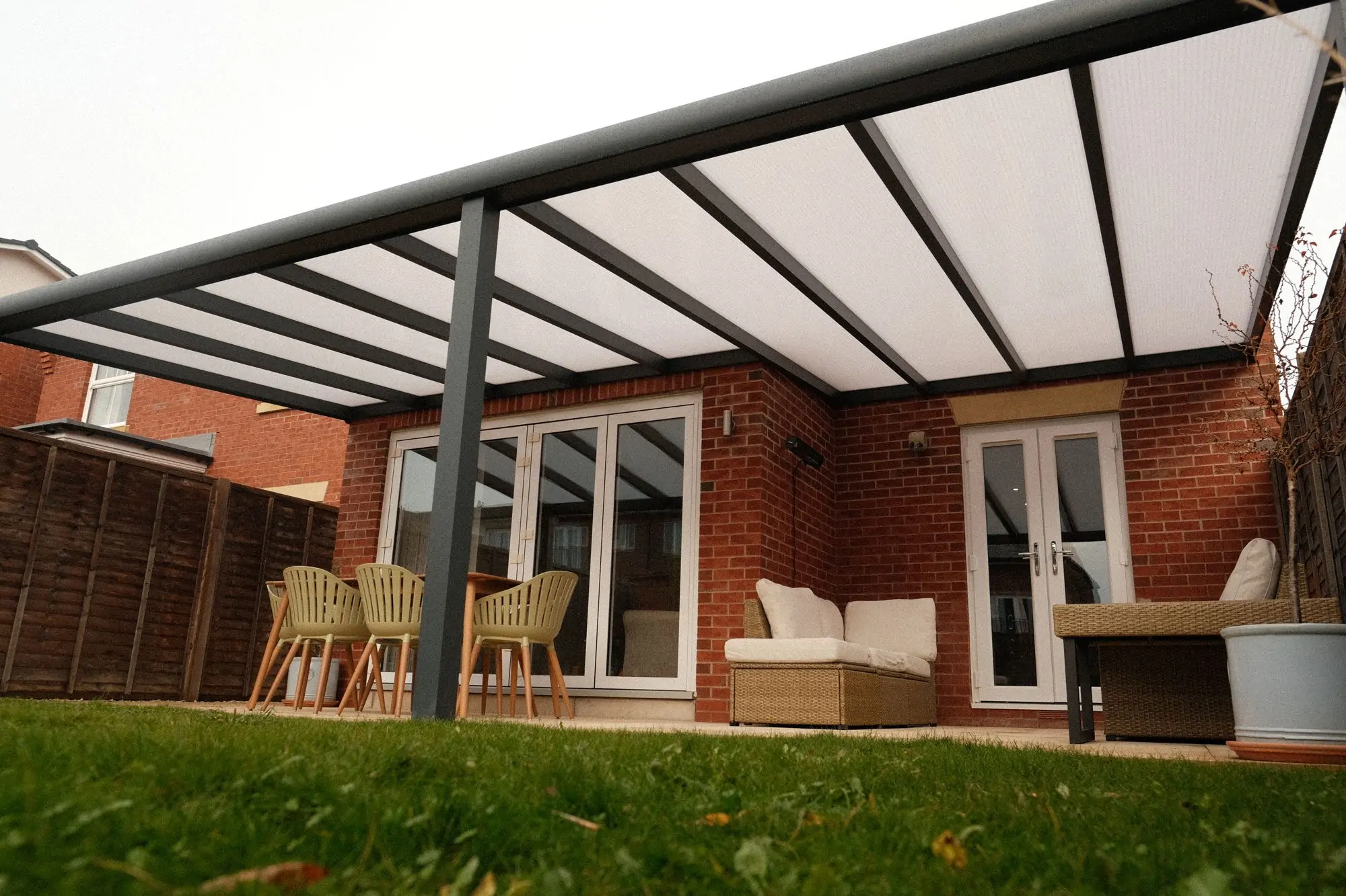 While glazing splits could theoretically be used to accommodate for architectural features like chimney breasts or an L-shaped rear wall, this would depend on precisely where the veranda is being fitted and how the chimney breast fits in relation to the beams. It may require bespoke manufacture, and a multi-stage install process to accommodate this properly. It’s much more efficient to install a polycarbonate veranda, as they offer installers complete flexibility, regardless of the size or positioning of a feature. Both the wall-plate and the polycarbonate panels can be cut and adjusted on-site by the installation team.