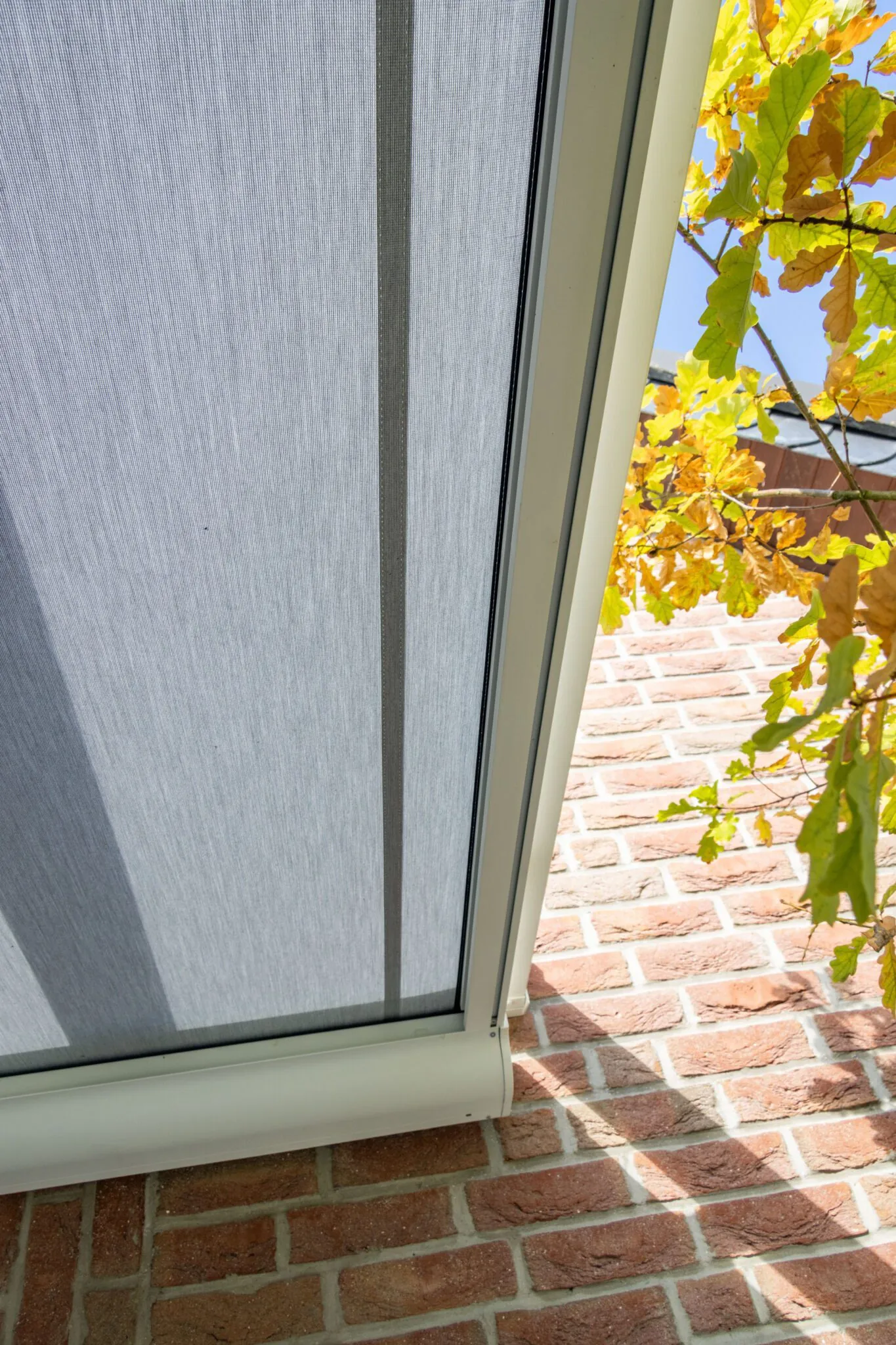 For larger glass verandas or south- and west-facing installations, an under-awning offers seamless, full-width shading beneath the roof. Installed within the veranda structure itself, the awning extends from a slimline cassette for smooth, quiet operation.