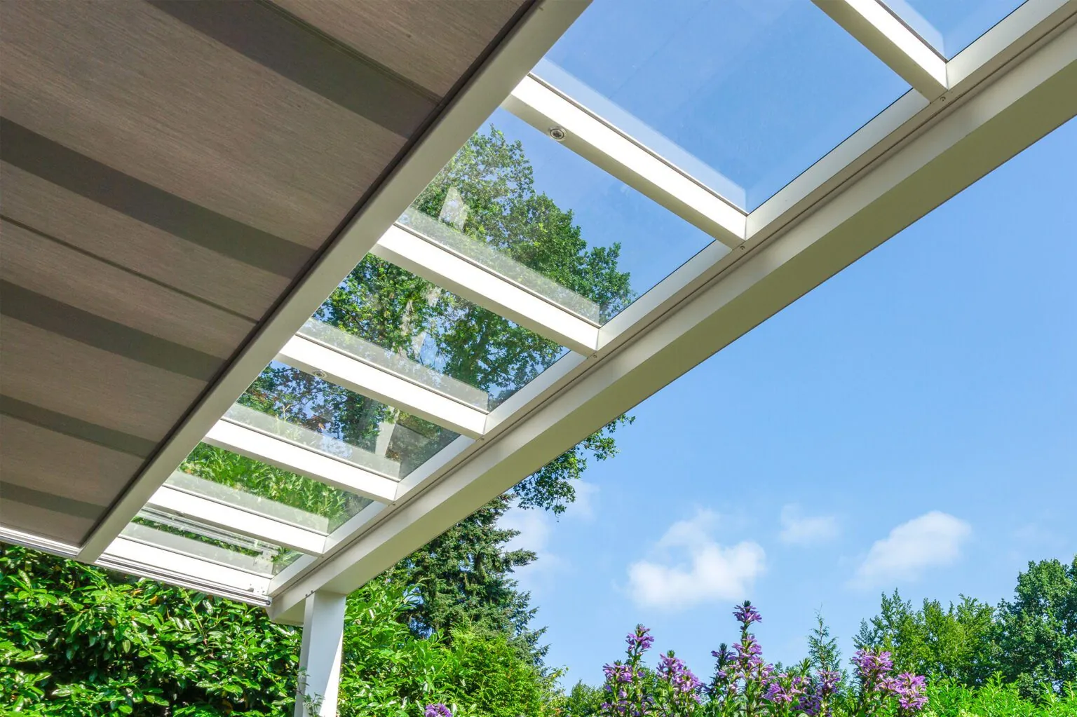 A glass veranda or glass room provides clean lines, unobstructed views, and a beautifully bright atmosphere — but that clarity also allows more heat and glare to build beneath the roof. To maintain comfort, a dedicated roof shading system is strongly recommended.
