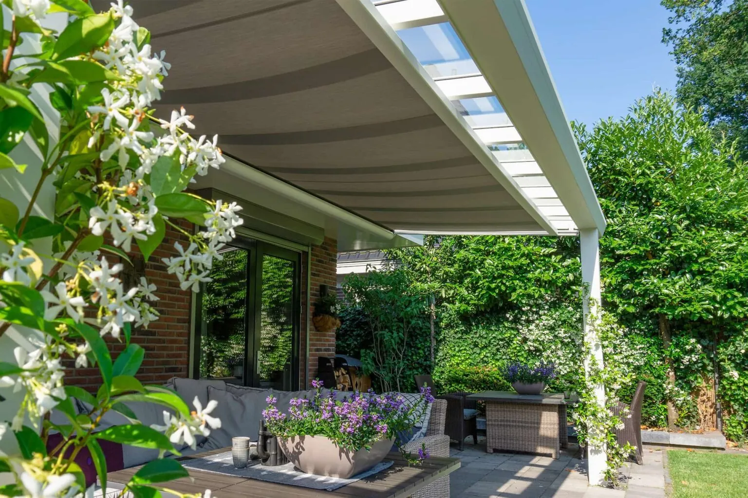 Under-awnings, by contrast, extend across the entire roof to provide uniform shading and are often motorised. They use higher-performance fabrics and are ideal for larger, south- or west-facing installations.